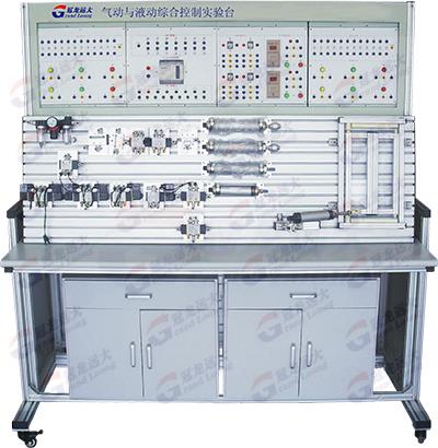 “GL3603A1气动与液动综合控制实验台”综合了“GL3601A1液压传动控制实验台”与“GL3602A1气压传动控制实验台”的实验项目,采用“二合一”结构,即一张实验桌上配备两套实验设备,一套为气动实验平台,另一套为液压实验平台,且各自配有独立的电气控制设备。实验台可以分别独立进行液压控制、气动控制的实验项目,适用于《液压传动与控制》、《液压与气压传动》、《气动技术》等相关课程的实验教学。